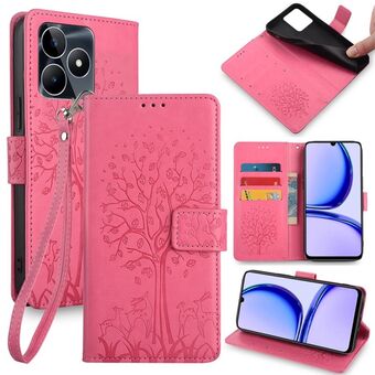 For Realme C53 4G / Narzo N53 4G Tree & Deer Embossed Leather Phone Case(Pink)