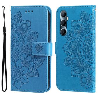 Θήκη τηλεφώνου δερμάτινη με ανάγλυφο επτά πέταλα λουλουδιών για Realme C65 4G (Ανοιχτό Μωβ)