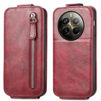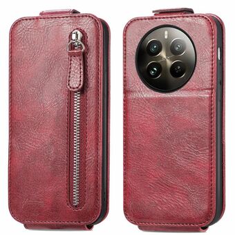 Για Realme 12 φερμουάρ πορτοφόλι κάθετη Flip υπόθεση τηλεφώνου δέρμα (κόκκινο)