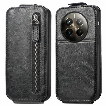 Για Realme 12 Pro + φερμουάρ πορτοφόλι κάθετη Flip δερμάτινη θήκη τηλεφώνου (Μαύρο)