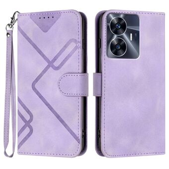Για Realme C55 4G Global/Narzo N55 Line Pattern Skin Feel Leather Phone Case (Light Purple)