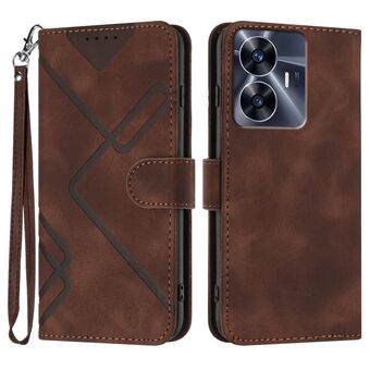 Για το Realme C33 2022 Global/2023 Global Line Pattern Skin Feel Leather Phone Case (Coffee)