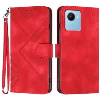 Για το Realme C30 4G/Narzo 50i Prime/C30s Line Pattern Skin Feel Leather Phone Case (κόκκινο)