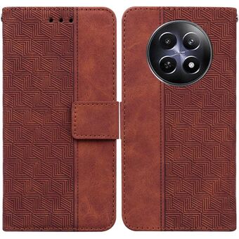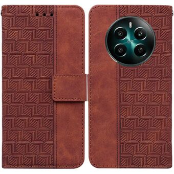 For Realme 12 5G Geometric Embossed Leather Phone Case(Brown)