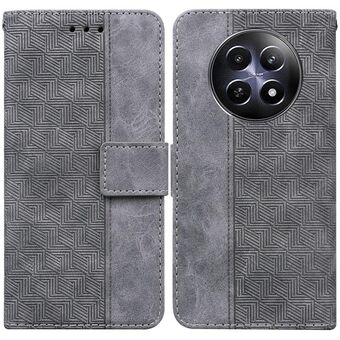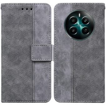 For Realme 12 5G Geometric Embossed Leather Phone Case(Grey)