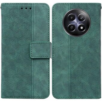For Realme 12 5G Geometric Embossed Leather Phone Case(Green)