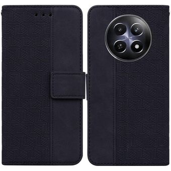 For Realme 12 5G Geometric Embossed Leather Phone Case(Black)