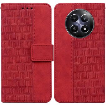 For Realme 12 5G Geometric Embossed Leather Phone Case(Red)