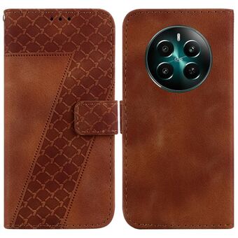 For Realme 12+ Seven-shaped Embossed Leather Phone Case(Brown)