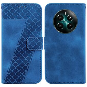 For Realme 12+ Seven-shaped Embossed Leather Phone Case(Blue)