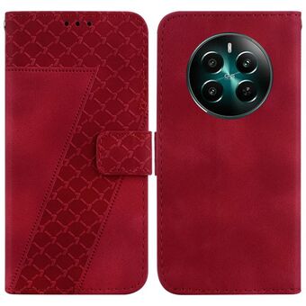 For Realme 12+ Seven-shaped Embossed Leather Phone Case(Red)