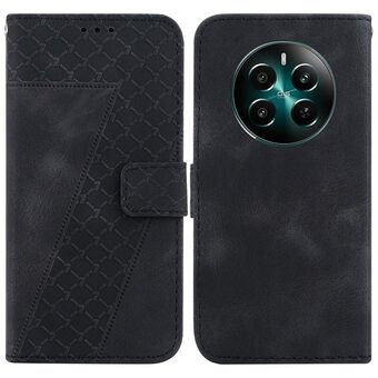 For Realme 12+ Seven-shaped Embossed Leather Phone Case(Black)