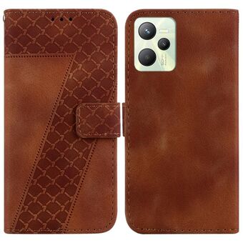Θήκη τηλεφώνου Realme C35 από δέρμα με ανάγλυφο σχέδιο επτά (Καφέ)