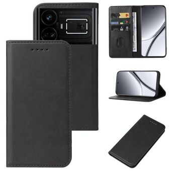 Για Realme GT5 Μαγνητικό κλείσιμο δερμάτινη θήκη τηλεφώνου (Μαύρο)