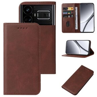 Για Realme GT5 μαγνητικό κλείσιμο δερμάτινη θήκη τηλεφώνου (καφέ)