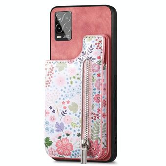 Για Realme 8 Pro Ρετρό ζωγραφισμένο φερμουάρ πορτοφόλι πίσω θήκη τηλεφώνου (μωβ)
