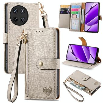 For Realme 11 4G Global Love Zipper Lanyard Leather Phone Case(White)
