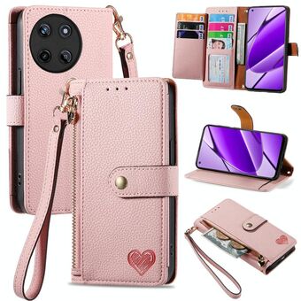 For Realme 11 4G Global Love Zipper Lanyard Leather Phone Case(Pink)