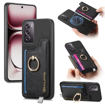 Θήκη τηλεφώνου για OPPO Reno12 Pro Global Retro Magsafe Cross Δερμάτινος Δακτύλιος Κάρτας (Μπλε)