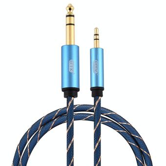 EMK 3.5mm Jack Male to 6.35mm Jack Male Gold Plated Connector Nylon Braid AUX Cable for Computer / X-BOX / PS3 / CD / DVD, Cable Length:1.5m(Dark Blue) (EMK)