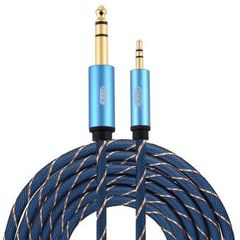EMK 3.5mm Jack Male to 6.35mm Jack Male Gold Plated Connector Nylon Braid AUX Cable for Computer / X-BOX / PS3 / CD / DVD, Cable Length:5m(Dark Blue) (EMK)