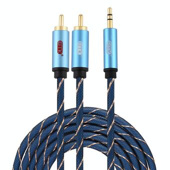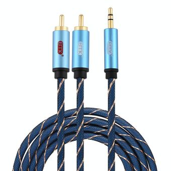 EMK 3.5mm Jack Male to 2 x RCA Male Gold Plated Connector Speaker Audio Cable, Cable Length:2m(Dark Blue) (EMK)