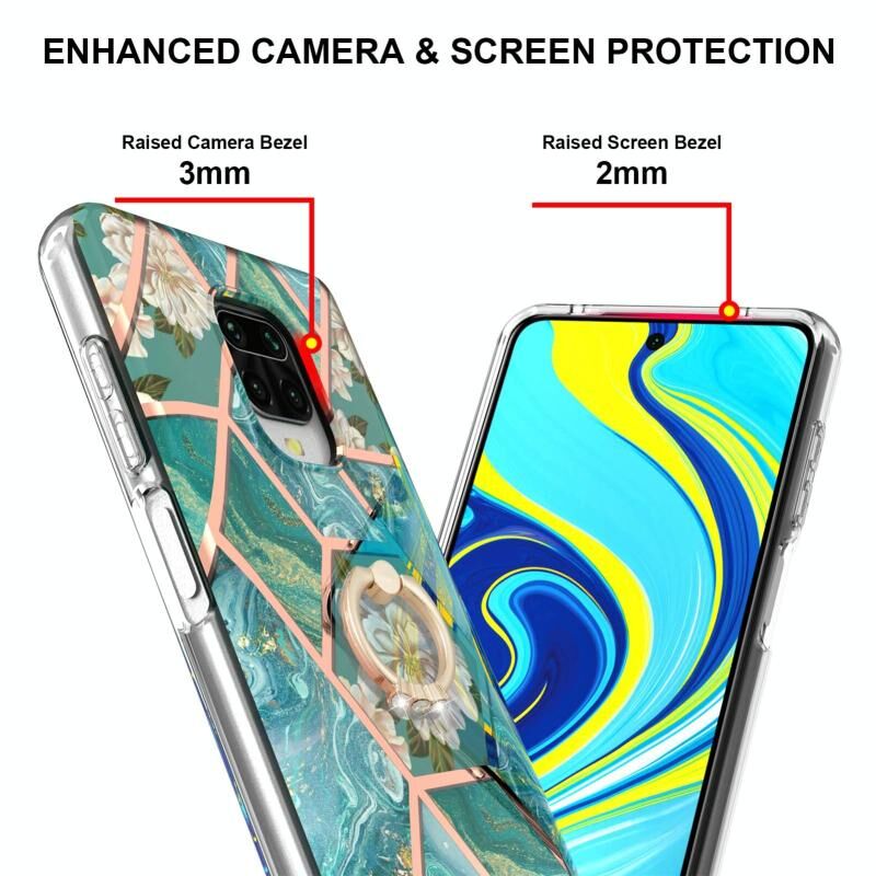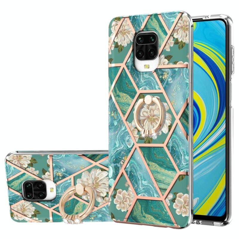 ή για Xiaomi Redmi Note 9S / Redmi Note 9 Pro / Redmi Note 9 Pro Max Ηλεκτρολυτική Επικάλυψη, Θήκη TPU με Σύνθεση από Μάρμαρο και Λουλούδια, Αντικραδασμική με Δαχτυλίδι Στήριξης από Κρύσταλλα (Ροζ Λουλούδι)