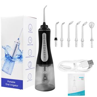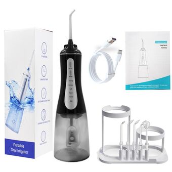 Στόμιο στοματικής κοιλότητας με επαναφορτιζόμενη δεξαμενή νερού 350ML, 5 ρυθμίσεις έντασης, με βάση - Μαύρο.