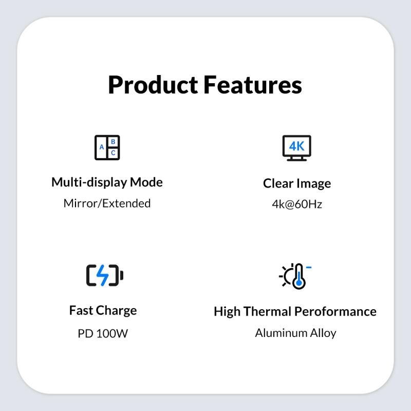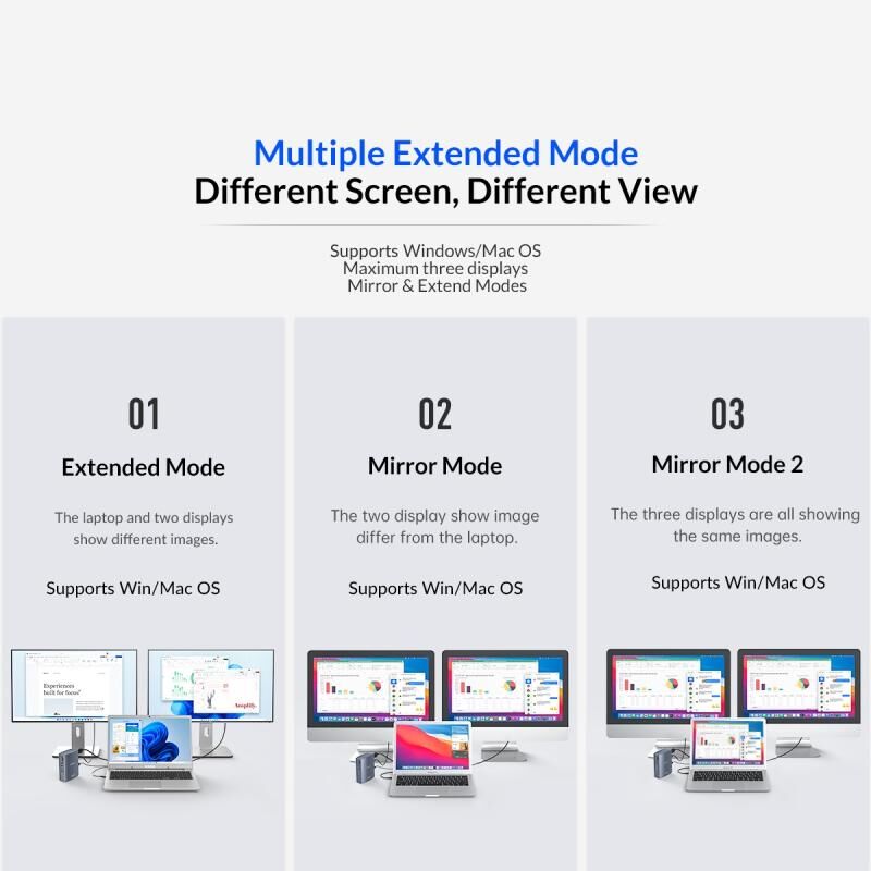 1. Can be connected to 2 external displays at the same time, supporting mirroring/expansion mode