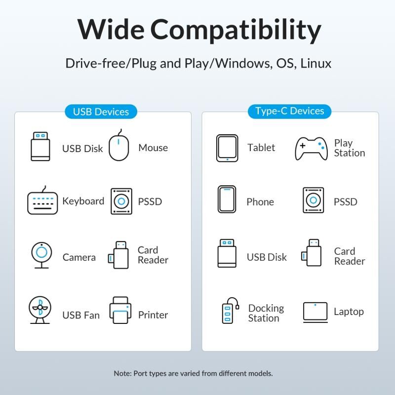 5. Wide Compatibility: USB Hub includes USB C to C cable and USB A adapter in the package, compatible with all USB-A/USB-C laptops. System Requirements Support Window / Mac OS/ Linux