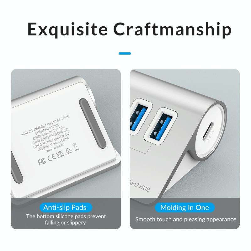 3. Κέλυφος από Αλουμίνιο: Το ORICO USB 3.2 HUB με πλήρες μεταλλικό κέλυφος και σχεδιασμό Apple όχι μόνο παρέχει γρήγορη απαγωγή θερμότητας και αντοχή στις γρατζουνιές που επιτρέπουν μεγαλύτερη διάρκεια ζωής, αλλά και για να ταιριάζει με τη συσκευή σας. Τα USB Hubs από αλουμίνιο δεν εκπέμπουν τοξικές ουσίες, σε αντίθεση με τους πλαστικούς επεκτατήρες θυρών USB, οι οποίοι ενδέχεται να περιέχουν ουσίες επιβλαβείς για τον άνθρωπο