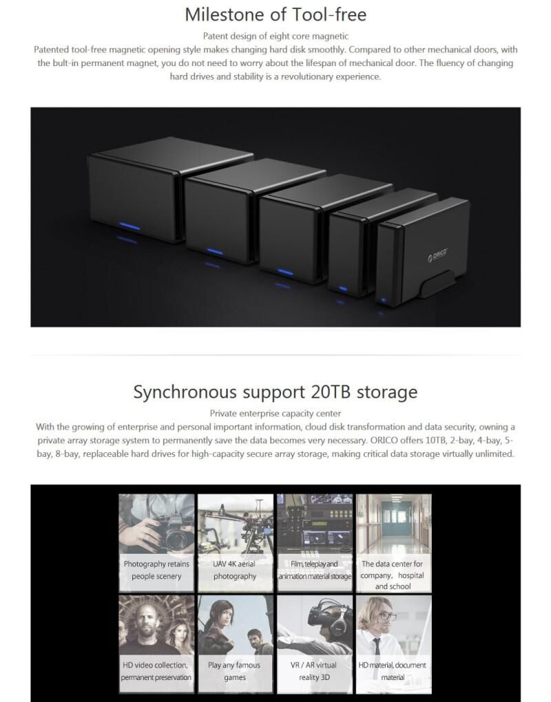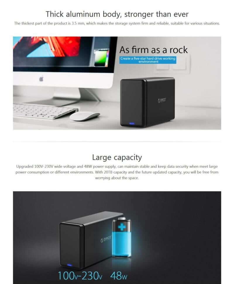 4. Μεγάλη χωρητικότητα: Αναβαθμισμένο τροφοδοτικό ευρείας τάσης 100V-230V και ισχύος 48W, μπορεί να διατηρήσει σταθερότητα και να διασφαλίσει την ασφάλεια των δεδομένων όταν συναντήσει μεγάλη κατανάλωση ενέργειας ή διαφορετικά περιβάλλοντα. Με χωρητικότητα 20TB και τη μελλοντική αναβαθμισμένη χωρητικότητα, θα απαλλαγείτε από την ανησυχία για τον χώρο.