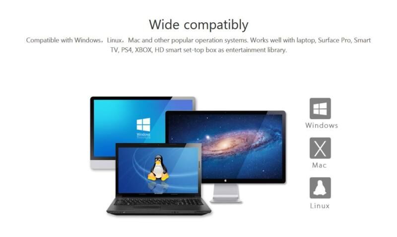 5. Ευρεία συμβατότητα: Συμβατό με Windows, Linux, Mac και άλλα δημοφιλή λειτουργικά συστήματα. Λειτουργεί καλά με φορητούς υπολογιστές, Surface Pro, Smart TV, PS4, XBOX, HD smart set-top box ως βιβλιοθήκη ψυχαγωγίας.