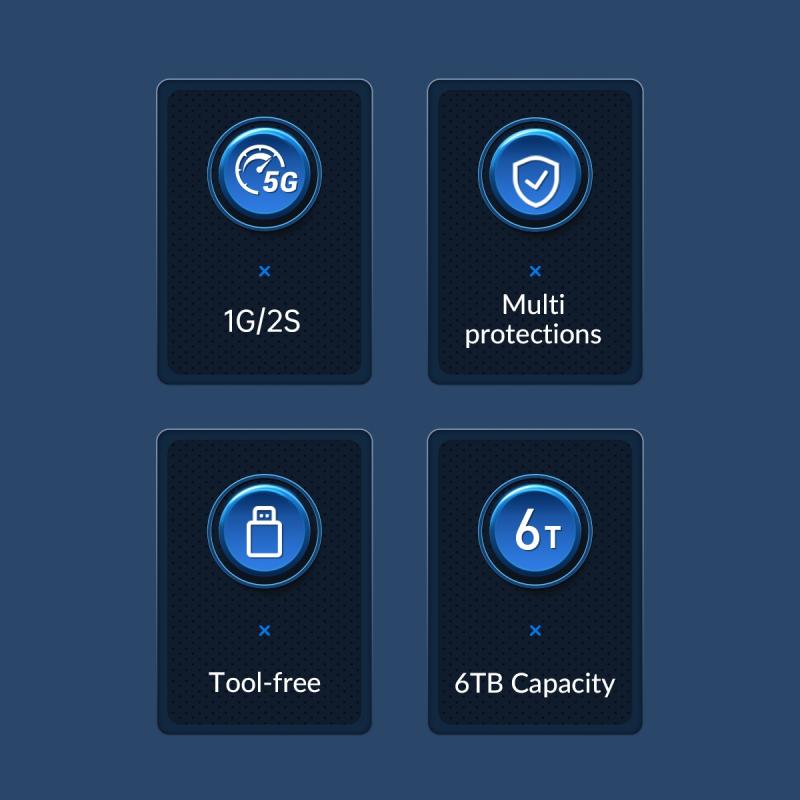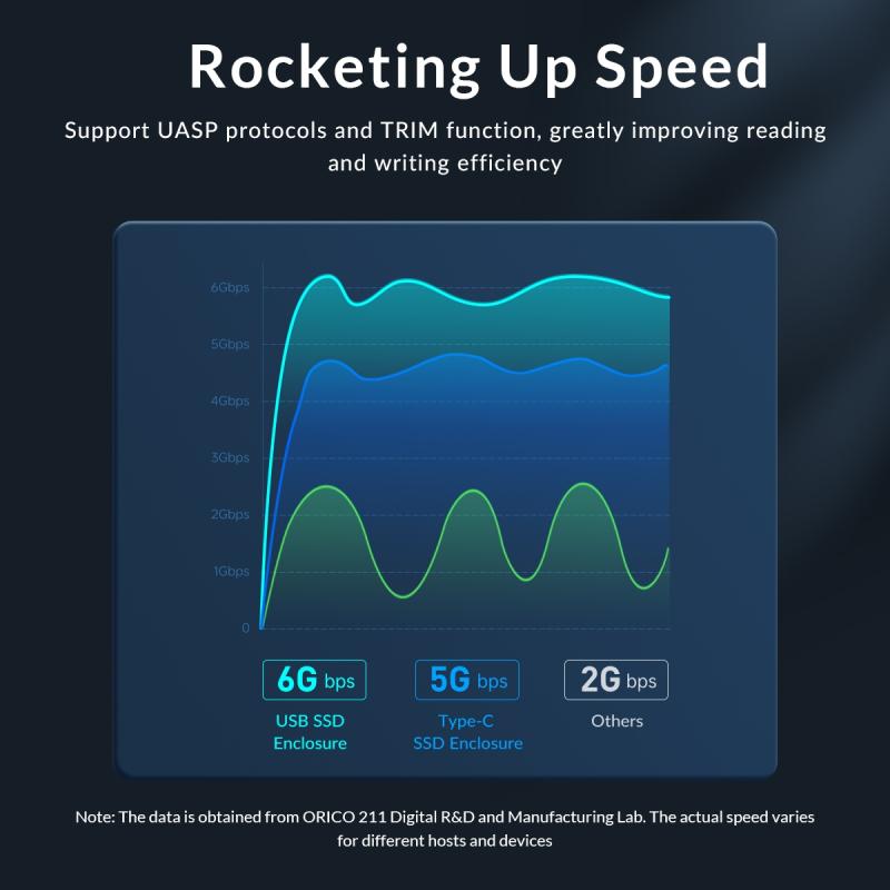 3. Υποστήριξη UASP: Όταν το περίβλημα είναι συνδεδεμένο σε έναν ελεγκτή host με λειτουργία UASP, η ταχύτητα μεταφοράς δεδομένων του είναι ταχύτερη από το παραδοσιακό πρότυπο USB 3.0, το οποίο μπορεί να αυξήσει αποτελεσματικά την ταχύτητα μεταφοράς του σκληρού σας δίσκου. Η εξωτερική διεπαφή εξόδου USB 3.0 μπορεί να υποστηρίξει ρυθμό μετάδοσης έως και 5Gbps.