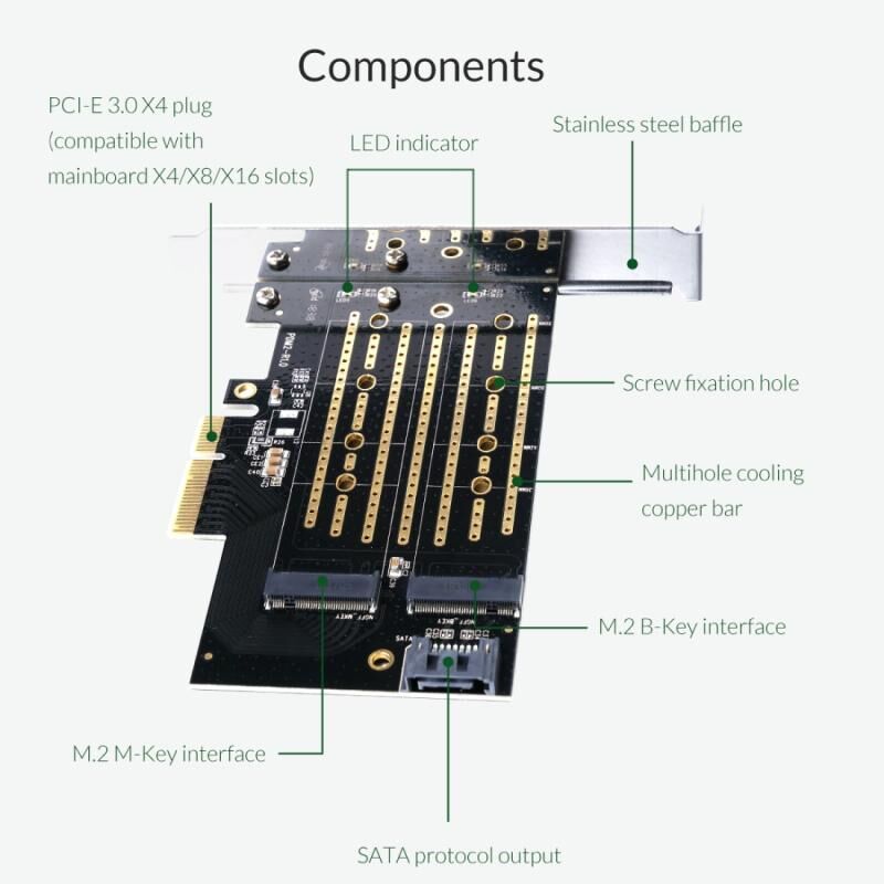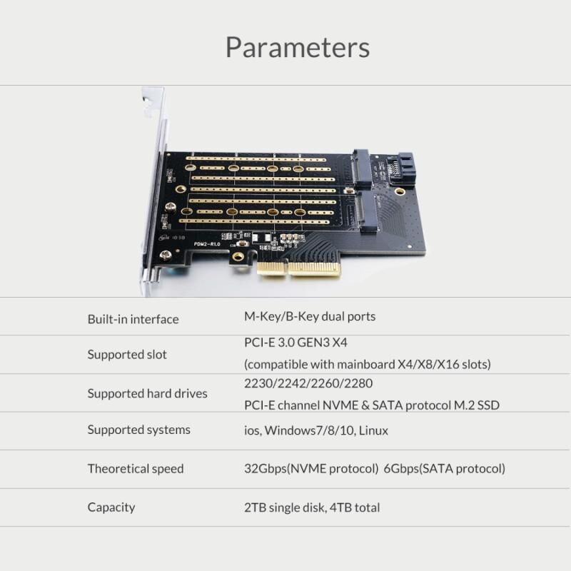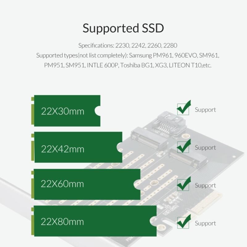 4.Υποστηριζόμενος SSD: 2230/2242/2260/2280, M.2 SSD Πρωτοκόλλου NVME/SATA με Κανάλι PCI-E