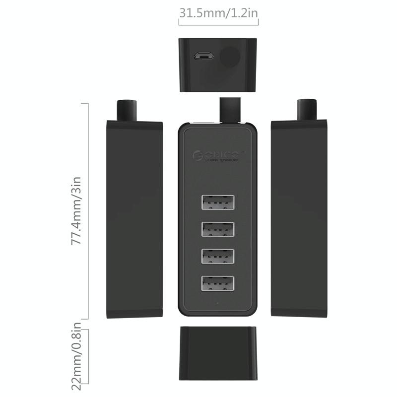 ORICO W5P-U2-100 USB 2.0 HUB με Καλώδιο Micro USB 100cm (ORICO)
