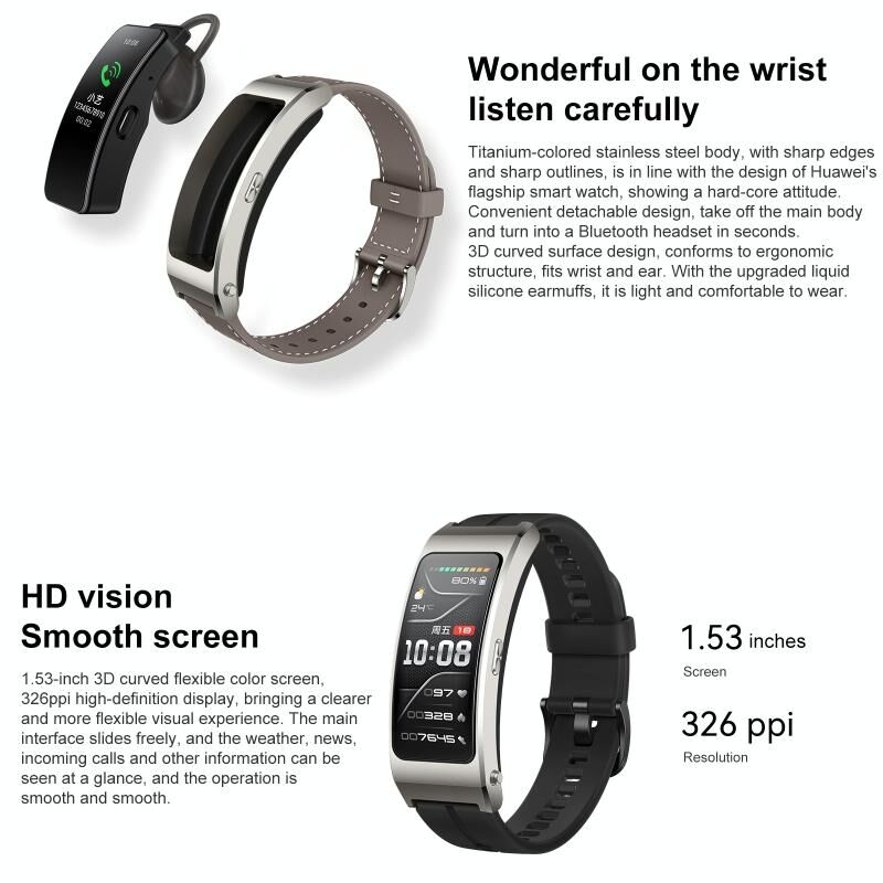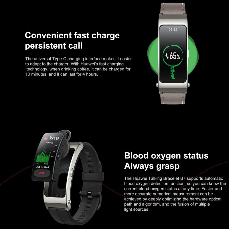 Original Huawei TalkBand B7 Smart Bracelet, 1.53 inch Screen, Support Bluetooth Call / Heart Rate / Blood Oxygen / Sleep Monitoring (Grey) (Huawei)