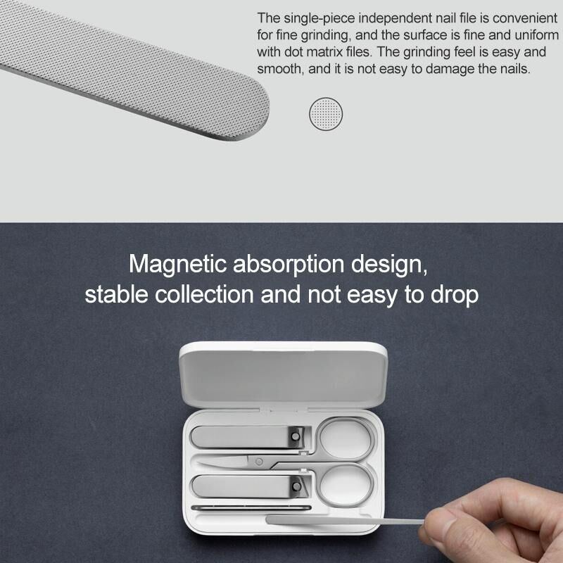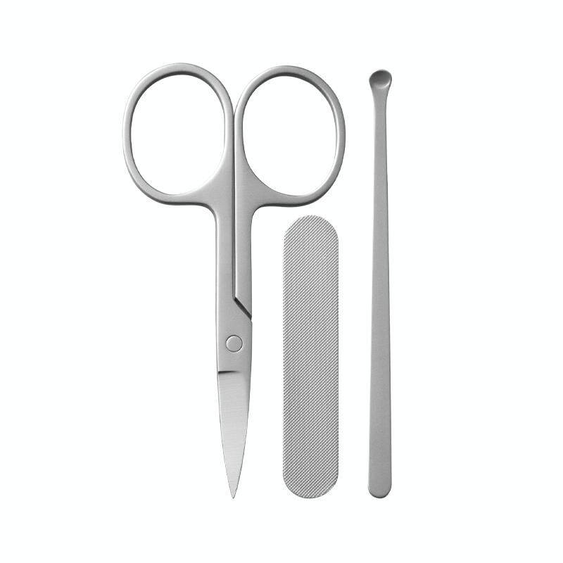 Product list: flat nail clippers x1, oblique nail clippers x1, beauty scissors x1, nail files x1, ear pick x1