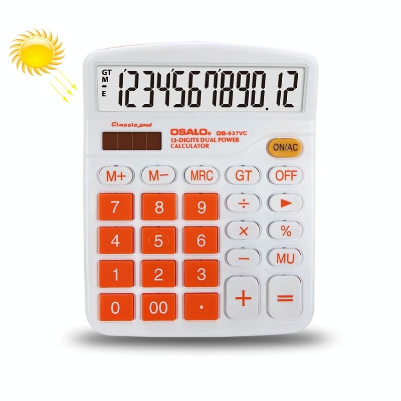 Υπολογιστής Επιτραπέζιος OSALO OS-837VC 12 Ψηφίων Πολύχρωμος, Διπλής Τροφοδοσίας (Ηλιακή & Μπαταρία) (Πορτοκαλί) (OSALO)