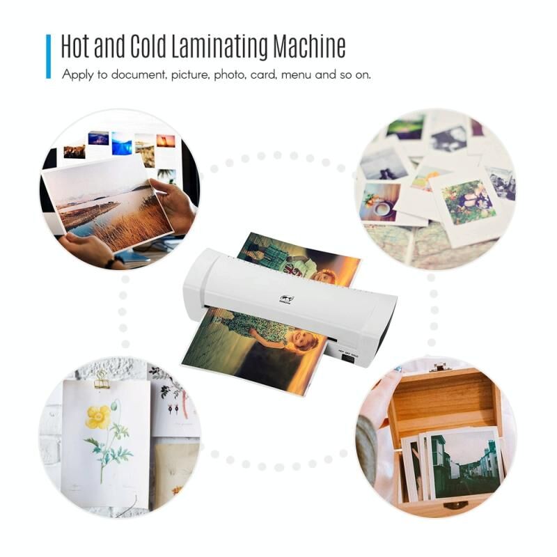 4. Thermal Laminator for A4/A5/A6 documents. Widely used in home, office, personal DIY, etc. Its perfect for giving your photos, kids artwork, recipes and craft projects a professional touch.