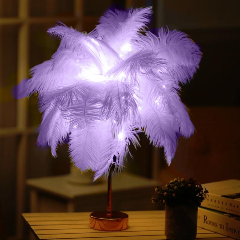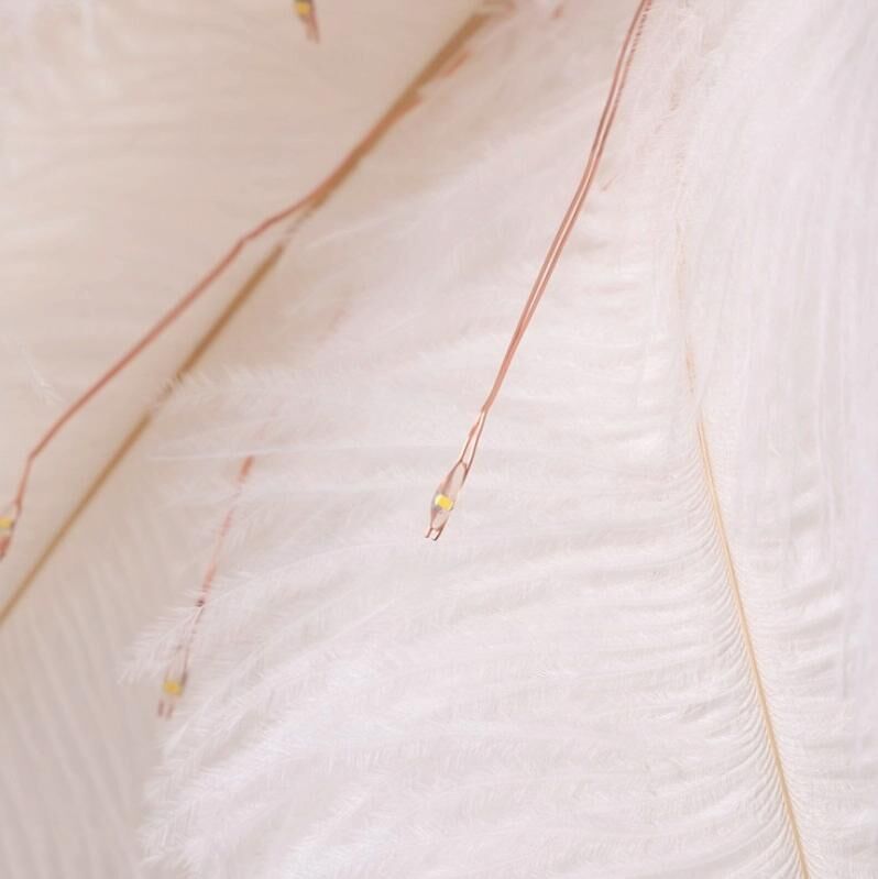 1. Material: natural ostrich feather, lamp beads, waterproof enameled copper wire