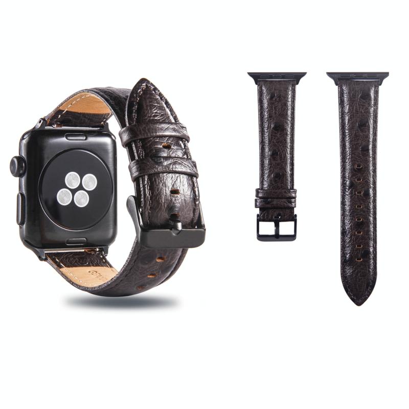 Ostrich Skin Texture Genuine Leather Wrist Watch Band for Apple Watch Series 3 & 2 & 1 38mm(Coffee)