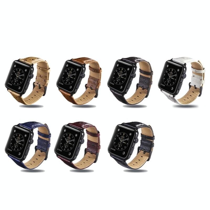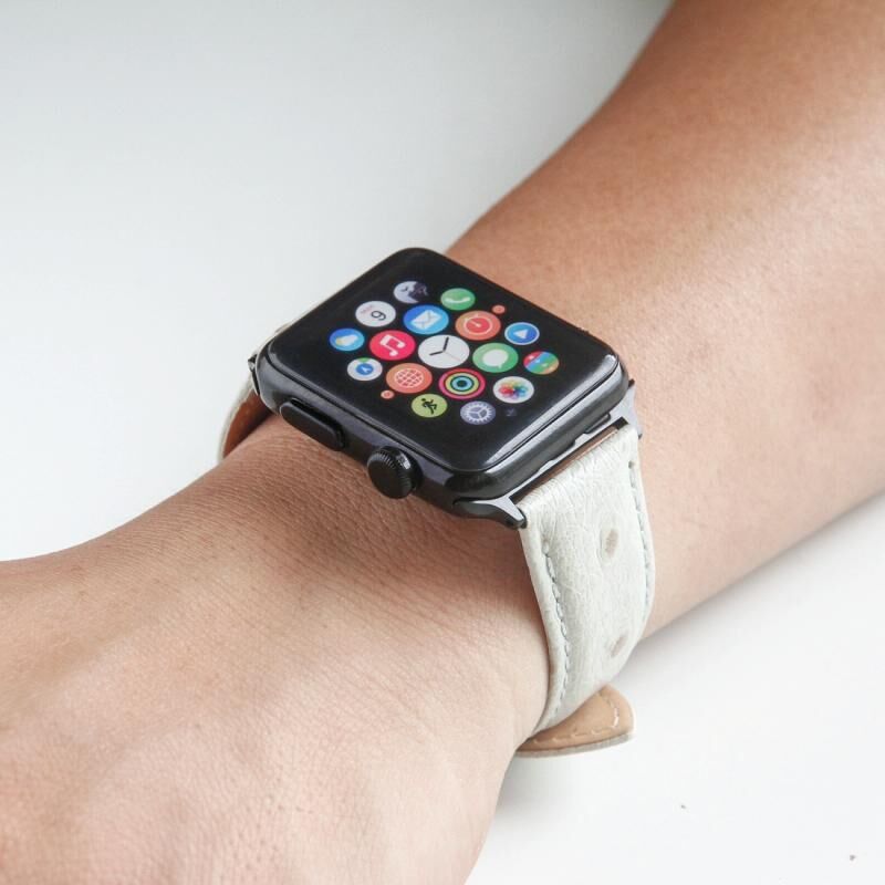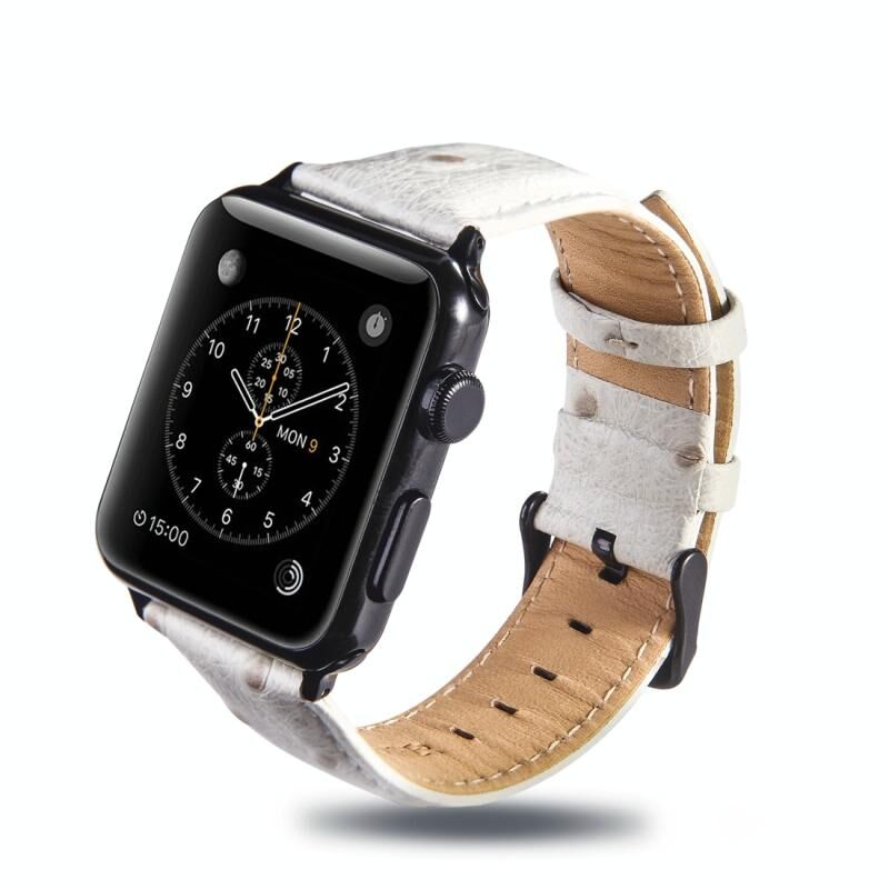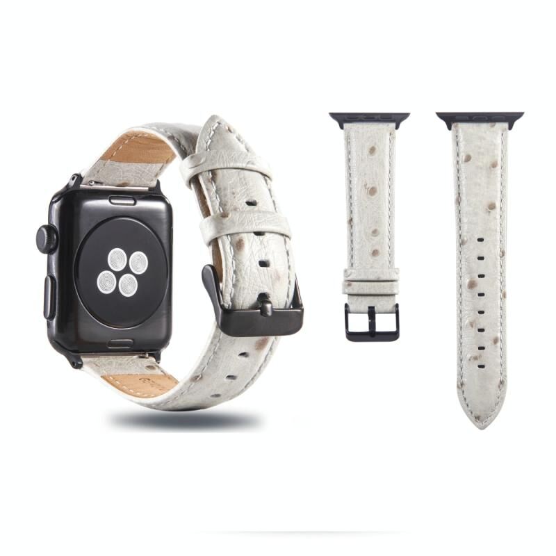 Ostrich Skin Texture Genuine Leather Wrist Watch Band for Apple Watch Series 3 & 2 & 1 38mm(White)