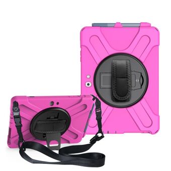 Για το Microsoft Surface Go 4 / 3 / 2 / 1 Αδιάβροχη πολύχρωμη θήκη σιλικόνης + PC Προστατευτική θήκη με θήκη & λουράκι ώμου & λουράκι χεριού & υποδοχή για στυλό (ροζ)