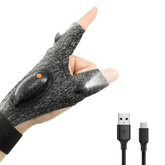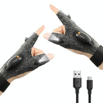 Night Riding Lighting Car Repair Fish Rechargeable LED Light Gloves, Style: Sisal Gray-Left And Right Hand