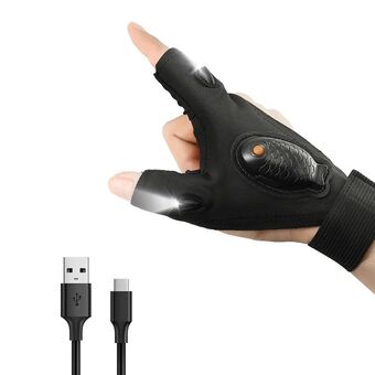 Night Riding Lighting Car Repair Fish Rechargeable LED Light Gloves, Style: Black-Left And Right Hand