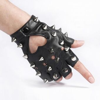 Children Punk Rivet Faux Leather Glove Kids DS Dancing Rock and Roll Jazz Half Finger Glove(Black)