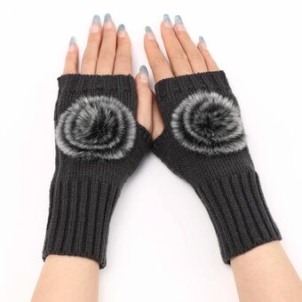Φθινόπωρο και Χειμώνας Γυναίκες Fingerless γούνα μπάλα γάντια πλεκτά μαλλί ζεστά μανίκια (σκούρο γκρι)