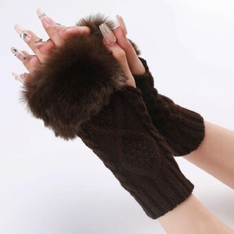 Γυναικεία κοντού τύπου γούνινα γάντια Diamond Knit ζεστά μανίκια βραχίονα χωρίς δάχτυλα (καφέ)