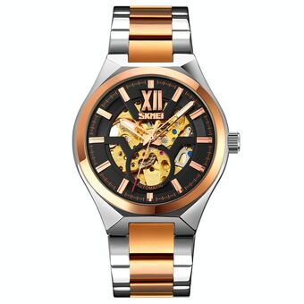 SKMEI 9258 Men Two-color Stainless Steel Strap Automatic Mechanical Watch(Middle Rose Gold Shell Black Surface) (SKMEI)